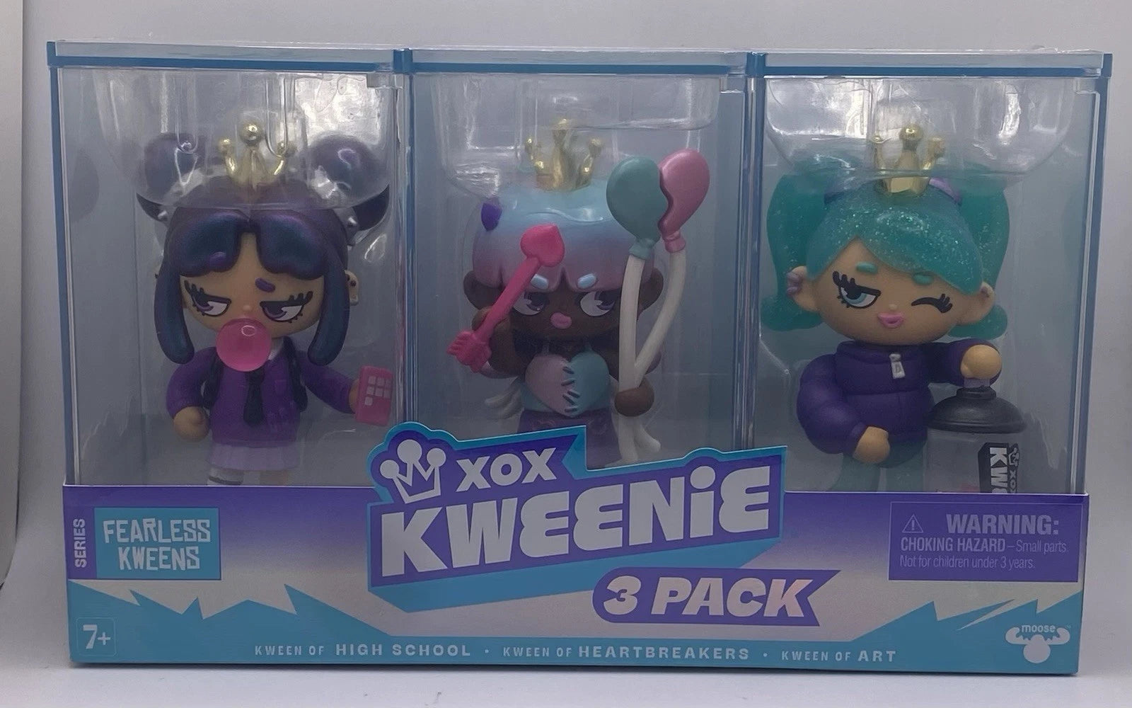 3 Pack XOX Dolls Fearless Kweenie Series Premium 4” Figurines and Display Case